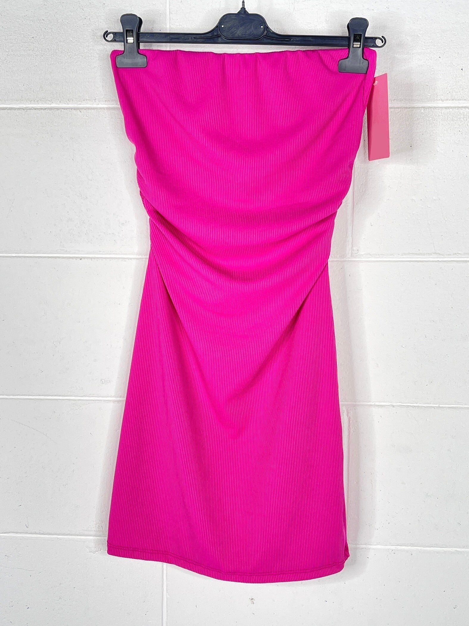 Strapless dress met lichte ribbel print.
